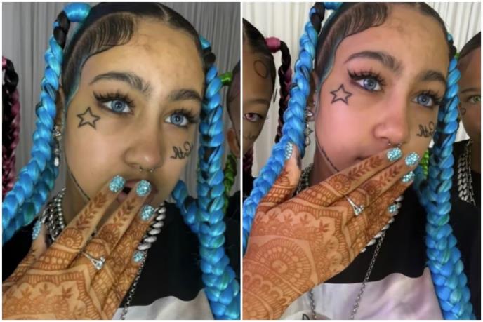 Ćerka Kim Kardašijan i Kanjea Vesta, dvanaestogodišnja Nort Vest, ponovo je privukla pažnju javnosti objavom novog izgleda na TikToku. Na snimcima i fotografijama koje su brzo postale viralne, Nort se pojavila sa lažnim tetovažama po licu i septum pirsingom, dok su detalji poput plavih kontakt sočiva, dugih trepavica, mehendi crteža na rukama i pletenica u plavoj boji upotpunili njen upečatljiv izgled.