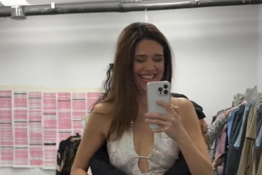 U garderoberu je napravila kratak video u kojem nosi kratku srebrnu haljinu sa šljokicama i dubokim izrezom. Međutim, mnogima su za oko zapale i pufnaste bele papuče koje je nosila uz glamuroznu kombinaciju.