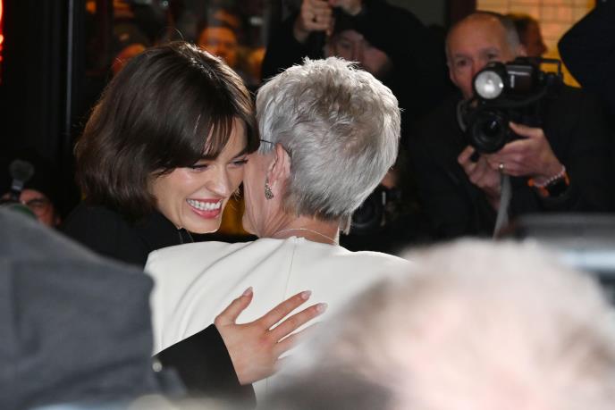 Glumica se pojavila na crvenom tepihu u Londonu u beloj haljini koja prati liniju tela, do lista, uz crne čarape i crne špic cipele, a sa Emom je imala više nežnih interakcija, držale su se za ruke i grlile se pred fotografima.