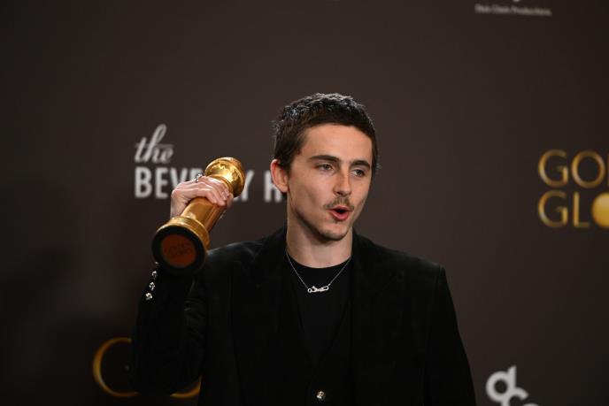 Timoti Šalame sa Zlatnim globusom na dodeli nagrada u Holivudu