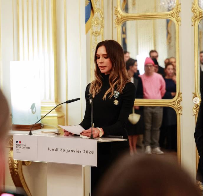 Bekamovi nisu u Francuskoj samo zbog Nedelje mode, već je ovo važan trenutak u karijeri i životu Viktorije Bekam. Nekadašnja članica grupe Spice Girls i poznata kreatorka je od francuskog Ministarstva kulture dobila titulu viteškinje Reda umetnosti i književnosti. Ona se u svom govoru zahvalila porodici i sakrila koliko joj je teško što jedan član nedostaje, naglasivši, umesto toga, zahvalnost i sreću zbog onih koji su tu da uveličaju njeno slavlje.
