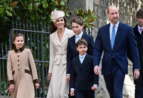 Princ Džordž (12), princeza Šarlot (10) i princ Luis (7) hodali su pored svojih roditelja dok su stizali na crkveni obred. Džordž i Šarlot su prvi put prisustvovali kraljevskoj uskršnjoj službi 2022. godine, dok je Luis svoj praznični debi imao sledeće godine.