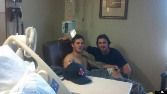 Ispod jedne fotografije, na kojoj se vidi Bejl kako pozira sa jednim mladićem, stoji natpis "Kristijan Bejl se sreo sa žrtvom pucnjave u Aurori Kerijem Rotmanom".