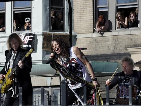 BOSTON - Na hiljade fanova okupilo se na ulici u Bostonu kako bi slušali grupu "Aerosmith" koja je svirala ispred zgrade u kojoj su nekada živeli.