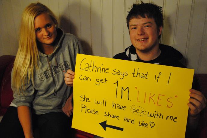 Norvežanin Piter Kverneng objavio je na Fejsbuku fotografiju sa svojom prijateljicom Ketrin koja mu je obećala da će spavati s njim ako fotografija sakupi milion lajkova. Za manje od 18 sati to je i uspeo.