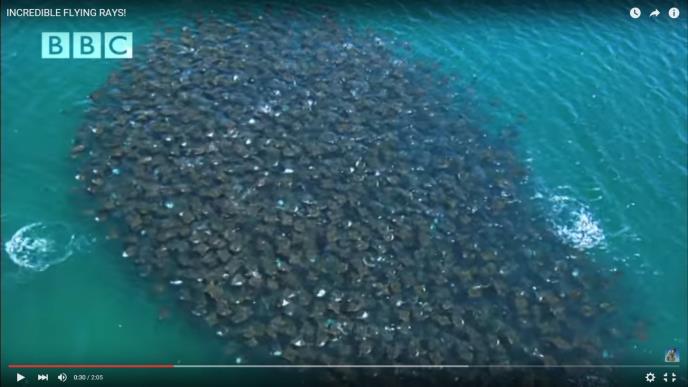 Ove ribe su raže, ili reciznije Mobula raže, koje se na prvi pogled ne izdvajaju ni po čemu od ostale morske faune, osim po tome što žele da lete. I dalje je nepoznato zašto se okupljaju u ovoliko velikim jatima koja privlače niz grabljivaca.