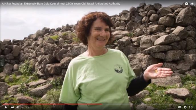 Lori Rimon, otkrila je novčić dok je pešačila na području severne Galileje u Izraelu. Ovakvo otkriće posebno je zbog svoje starosti i očuvanosti, naime novčić datira iz 107. godine nove ere, i pripada retkoj seriji kovanica koje su puštene u opticaj za vreme cara Trajana. 24-karatni zlatni novčić nosi lik prvog rimskog cara Oktavijana Avgusta.