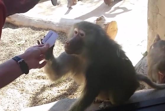 Babun u zoo vrtu pažljivo je posmatrao posetioca koji je za njega priredio jedan simpatičan magični trik.