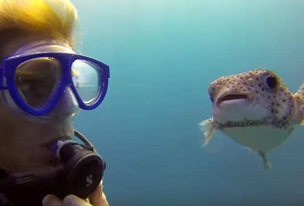 STEKLI NEVEROVATNOG PRIJATELJA NA DNU OKEANA: Naduvana riba htela da se pogira sa roniocima