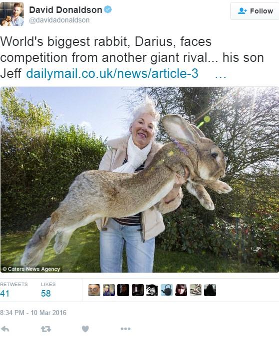 Džef je star osamnaest meseci, a titulu najvećeg zeca u Ginisovoj knjizi rekorda preuzeo je od svog oca Dariusa. Ipak, njegovo mesto nije sigurno s obzirom na to da njegova sestra Enia, koja je stara samo pet meseci, još raste i već je na putu da preraste Džefa u dužini.