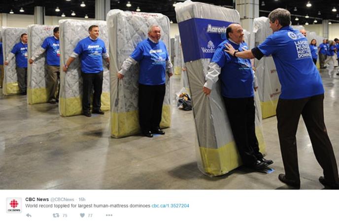 Akrobacija održana u Merilendu u kojoj je učestvovalo više od 1.200 ljudi i dušeka upisana je u Ginisovu knjigu rekorda kao najveći ljudski domino ikada.