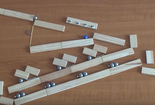 Naoružan drvenim blokovima, magnetima, metalnim klikerima i raznim trikovima, Kalpamino je napravio nekoliko zapanjujućih "lavirinta".