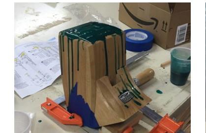 Nakon što je zalepio dno, sipao je epoksi smolu u rupe.
