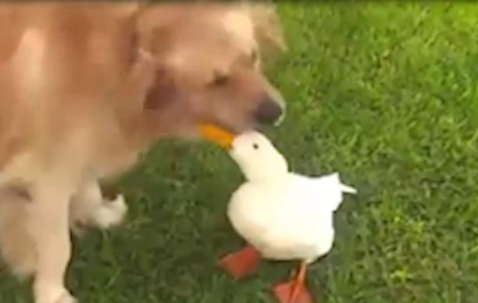 Ovaj pas i patak su odrasli zajedno i njihovo prijateljstvo je nerazdvojno i neraskidivo.