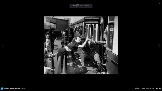 Žena se naginje preko ograde da poljubi britanskog vojnika, koji se vraća iz Drugog svetskog rata. London, 1940. godine.