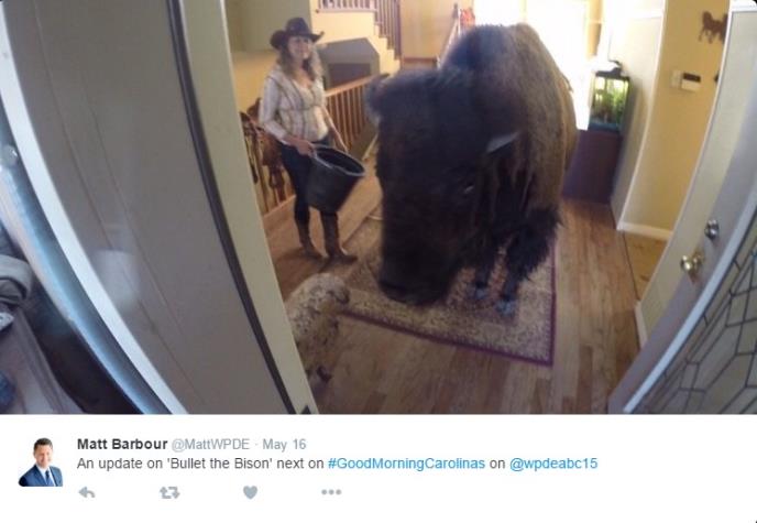Make room for your new housemate: A 1,000 lb Bison. Bullet's roommate says, “Scary? No, she’s not scary,” Schoeve told the Morning News. “She’s got a great personality.”
