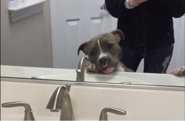 Mladi pitbul Lola i dalje istražuje svet oko sebe, a najnovije otkriće ju je posebno šokiralo... njen odraz u ogledalu.