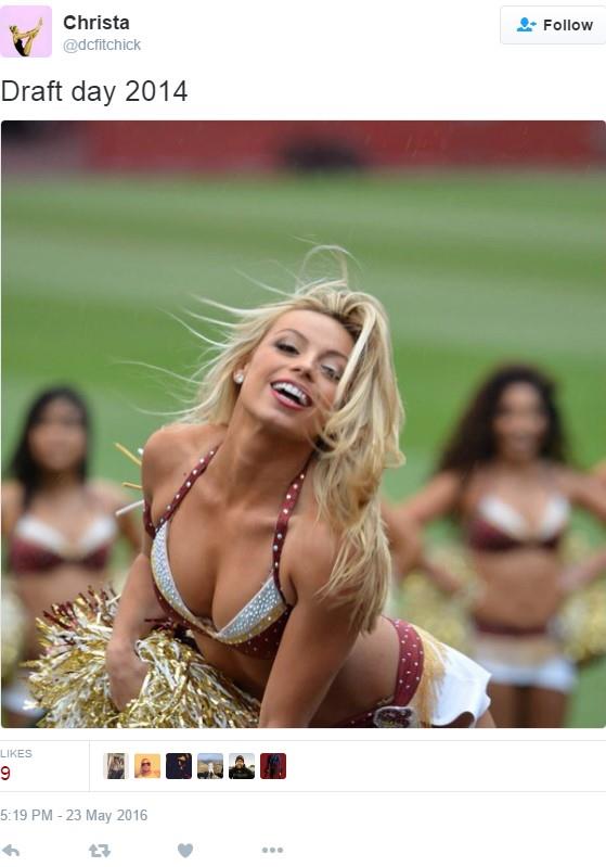 Biber je Ejken zapazio dok je pratio pregled Vošington Redskinsa na čijim utakmicama ona nastupa, te je još iste večeri otišao na njen profil na Tviteru da ostavi komentar da izgleda prezgodno.