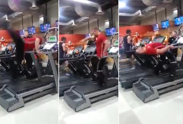 Ovaj mladić prosto uživa u treningu. Pronašao je način kako da se zabavi dok vežba na pokretnoj traci, a i da priredi zabavu za ostale članove u teretani.