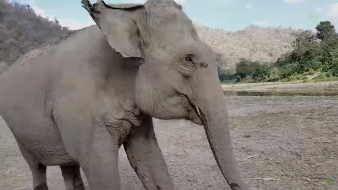 Kam La živi sa majkom i ostalim slonovima u nacionalnom parku koi je posebno namenjen slonovima. Derik je jedan od volontera parka i očigledno, među slonovima, jedan od omiljenih zaposlenih.