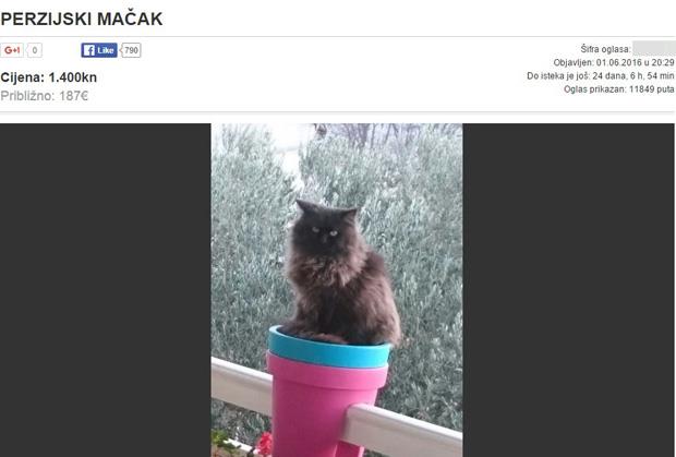 "Prodaje se persijski mačak zvani Ustaša, star godinu dana. Mačak je isključivo za kuću ili stan nikad nije izlazio napolje. Kastriran. Dostava besplatna do Splita i okoline po dogovoru. Ustaša je spreman za novi dom", stoji u pomenutom oglasu, uz koji su priložene i slike ovog crnog persijanera.