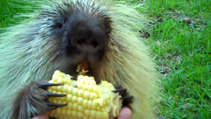 Bodljikavo Tedi Ber je toliko oduševljeno klipom kukuruza, da se u jednom momentu čini da izgovara "To je moj kukuruz!".