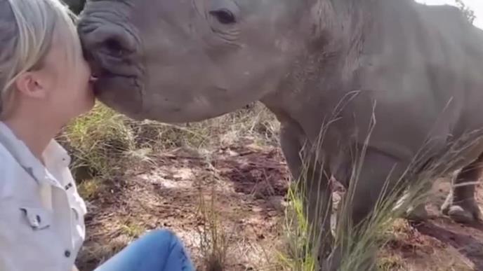 Da je nosorog opasna divlja životinja, definitivno demantuje dama sa snimka.