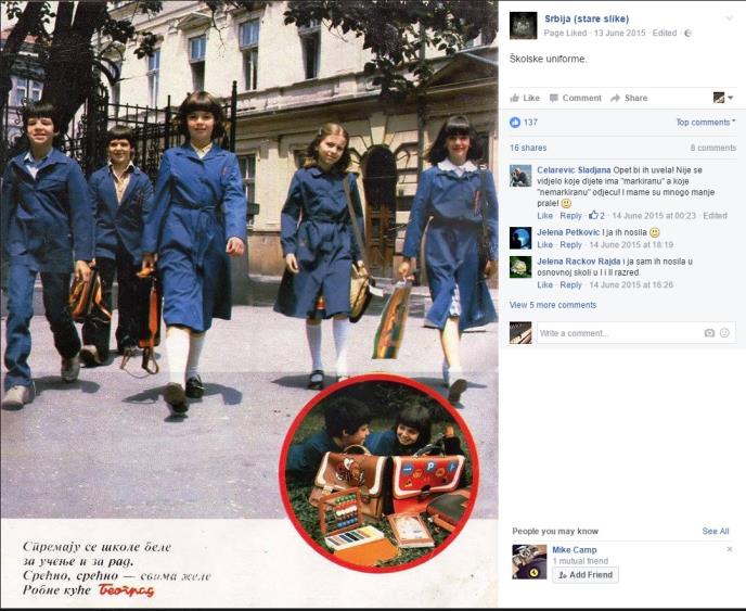 Taj običaj (ili pravilo) nestao je krajem 80-ih godina i deca su u školu dolazila u svakodnevnoj odeći.