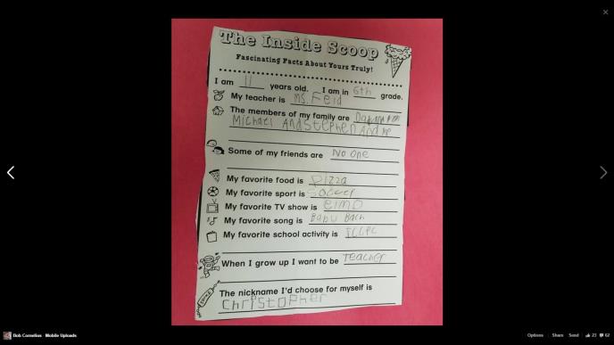Bob je prilikom jedne posete školi fotografisao nekoliko radova svog sina koji su bili okačeni na školskim panoima. Među njima se nalazio i projekt u kom su učenici morali da otkriju neke detalje o svom životu.