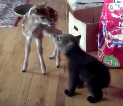 Pomislićete da je došlo do borbe, ali ne... Sve pada u vodu kada su obe životinje mladunci. Pogledajte...