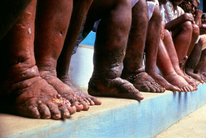 Takođe poznat kao elefantiasis, ova bolest u početku nema simptome, ali vremenom se vidi ogroman otok na zaraženom mestu.