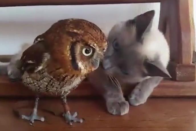 Pogledajte igru mačke i sove, dve životinje za koje nikada ne biste rekli da mogu biti u ljubavi.