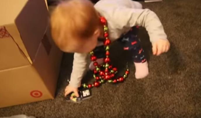 Mama i tata su priredili pravo iznenađenje ovoj bebi kada su izneli novogodišnju jelku.