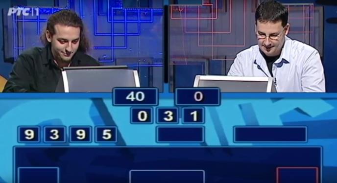 U igri "Moj broj", crveni takmičar je dobio zadatak, da uz pomoć brojeva 9, 3, 9, 7, 15 i 75 dobije broj 31.