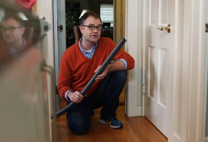 Umesto krpara koje ste do sada koristili, čovek iz videa pokazao je sasvim novi trik – kako da običnu cev za izolaciju (od stiropora) iskoristite da zatvorite šupljinu ispod vrata.