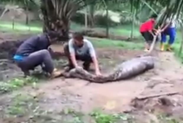 Čak trojica ljudi je morala da ga pomera iz blata zajedničkim snagama, a jedan od njih rekao je da je to najveći piton kog je ikad video.
