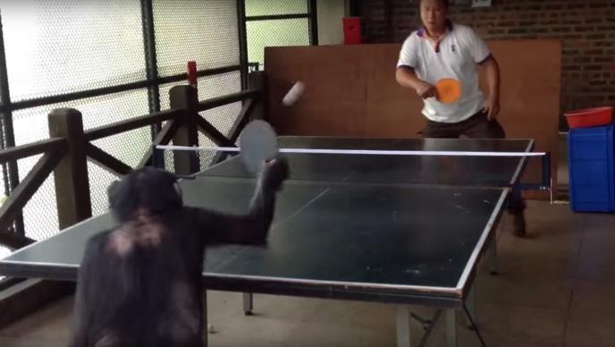 Pogledajte video koji je pregledan preko 160.000 puta, na kojem majmun pobeđuje čoveka u stonom tenisu.