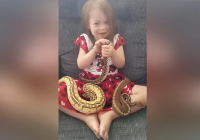 Trogodišnja Dženi ima, najblaže rečeno, neuobičajene ljubimce. Na videu koji je snimio njen otac, vidi se kako se bezbrižno igra sa tri pitona.