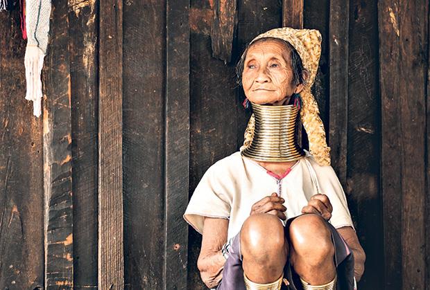 Na graničnom pojasu između Tajlanda i Mjanmara živi pleme Padaung, čije se devojčice i žene ukrašavaju bakarnim prstenjem koje nižu oko vrata i članaka.
