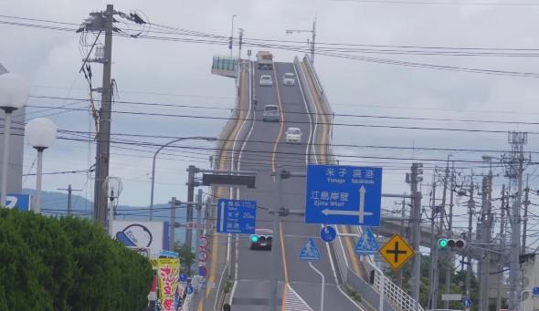 Ešima Ohaši danas je najveći most sa čvrstim okvirima u Japanu i treći najveći u svetu. Iako se čini da prilikom spuštanja sa mosta možete lako da izgubite kontrolu nad vozilom, a do zemlje dođete leteći, izgled vara.