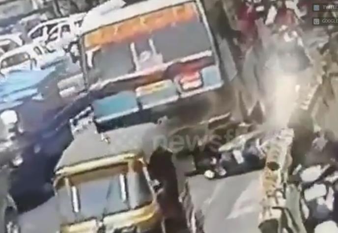 Saobraćajni haos na indijskim ulicama je tamo kao "dobar dan", pa prizori mravinjaka ljudi i vozila i nisu neko čudo. No, situacija sa snimka je i te kako privukla pažnju svetske javnosti jer se vozač skutera u jednom momentu našao pod točkovima autobusa.