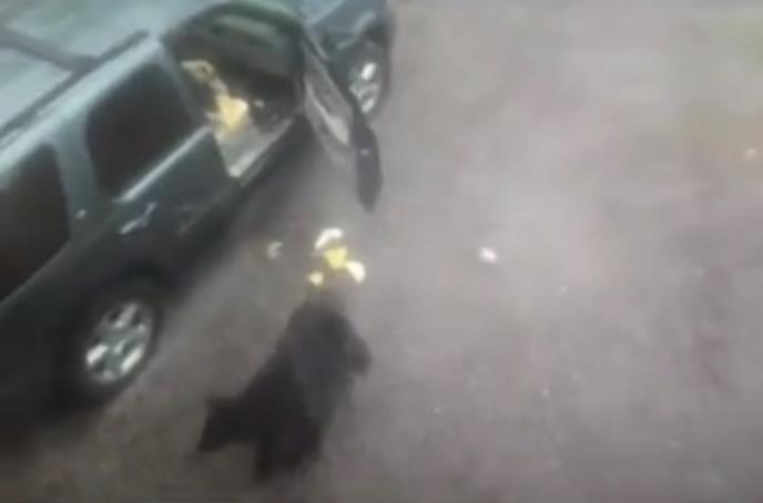 Kako su mama medvedica i meče dospeli u parkirani džip, to nikome nije jasno, ali su potom uspeli da se zaključaju u njemu.