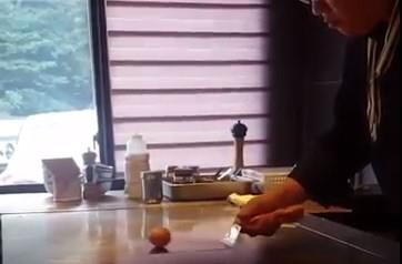On najpre žonglira sa jajetom na špatuli, da bi onda na vreloj plotni kreirao romantični doručak.