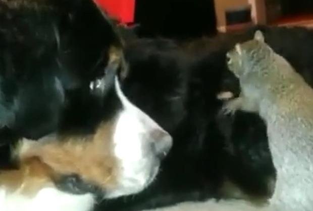Tako je i ova vrednica sa snimka rešila da sakrije lešnik na, po njenoj proceni, sjajnom mestu - krznu dugodlakog psa!