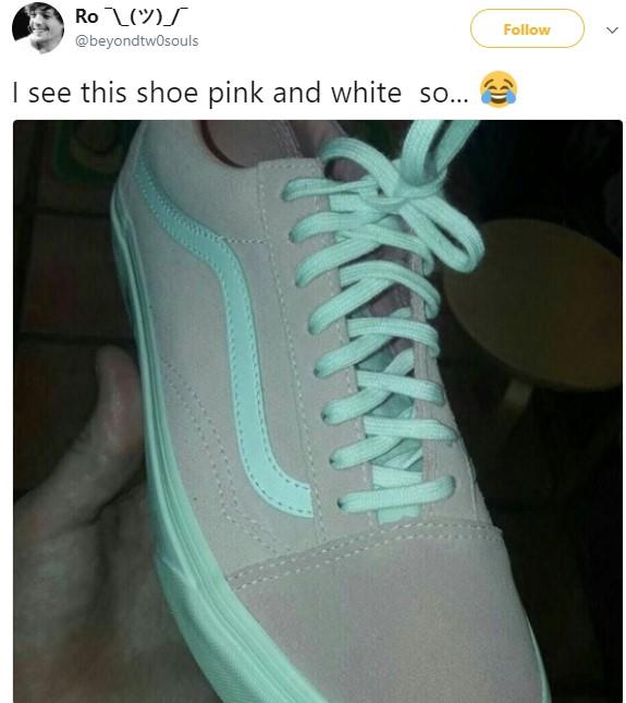 Korisnica Fejsbuka Nikol Koltard objavila je fotografiju patika svoje prijateljice, sa pitanjem koje su one boje.