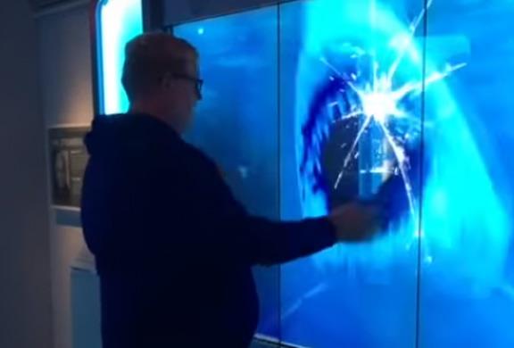 Uz ekran, koji podseća na akvarijum, piše "dodirnite na sopstveni rizik", a mladić se osmelio da to i uradi