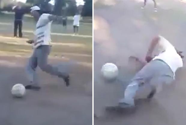 (VIDEO) MOGU JA I PIJAN DA IGRAM FUDBAL! Loptu je redovno mašio, ali je zato nepogrešivo padao!