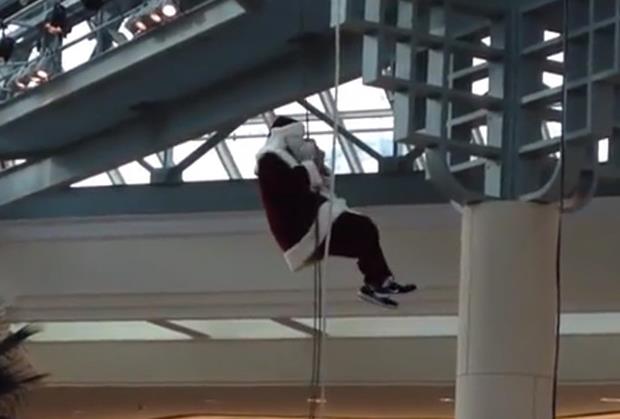 Svako dete zna da Deda Mraz ulazi u naše domove kroz dimnjak. Ovaj sa snimka, međutim, nije se držao oprobanog recepta, već je pošto-poto hteo da napravi spektakl od svog dolaska u veliki tržni centar u Palm Biču na Floridi.
