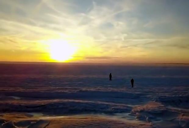 Spektakularan snimak potiče sa Old silver plaže i koliko dopire pogled sve je pod ledom. Autori snimka su nam pokazali i koliko je ledeni pokrivač čvrst jer su opušteno šetali njime.