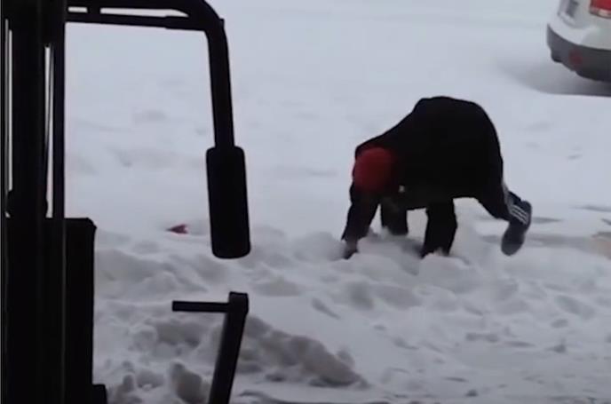 (VIDEO) AKROBACIJE NA LEDU SA LOPATOM U RUCI! Rus urnebesno čisti sneg i jedva uspeva da ne padne!